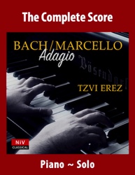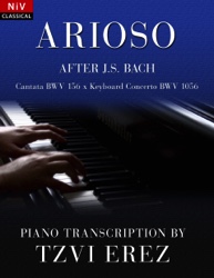 Based on ellements from both Bach's Cantata in G (BWV 156) and the Keyboard Concerto in F minor (BWV 1056), the Arioso piano sheet music by Tzvi Erez. Includes dynamics and ornamental markings throughout. This is a viewable and printable PDF.